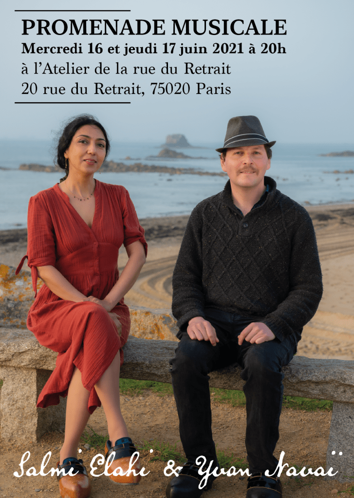 Nous avons le plaisir de vous annoncer que le spectacle Promenade musicale, piano-voix, une promenade à travers des chansons du répertoire d’Iran, d’Azerbaïdjan, de Russie, de France et d’Italie, se produira les mercredi 16 et jeudi 17 juin à l’Atelier du Retrait (20 rue du Retrait, 75020 Paris).