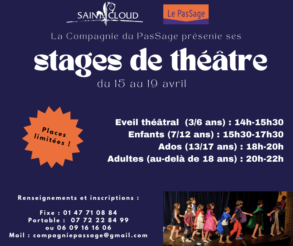 Notre stage de printemps aura lieu du lundi 15 au vendredi 19 avril 2024. Si vous restez à Saint-Cloud ou ses alentours pendant la période, n’hésitez pas à vous inscrire !