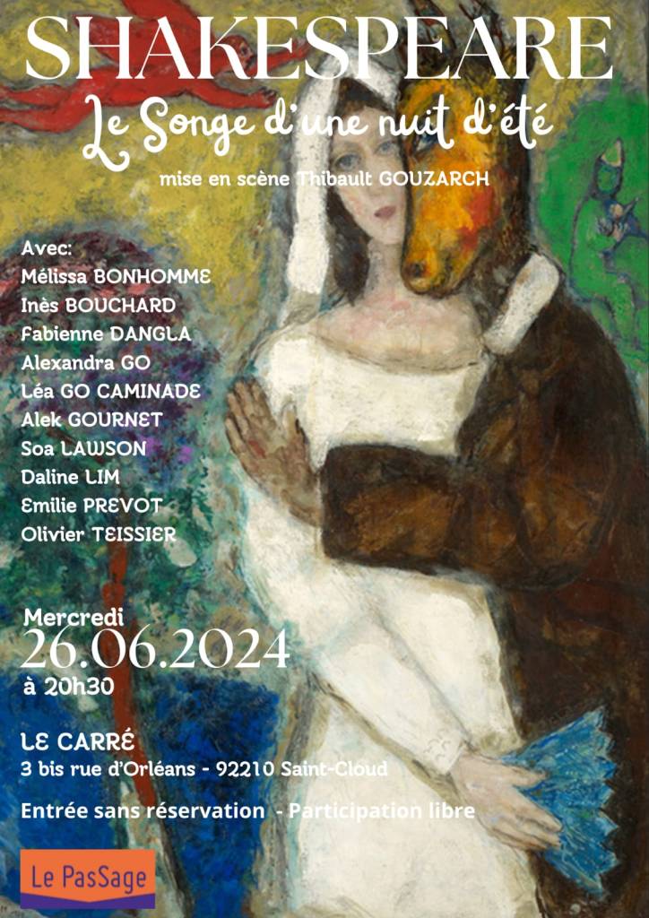 Le Songe d’une Nuit d’Été est une comédie de William Shakespeare qui mêle quatre amoureux égarés dans une forêt enchantée, des êtres magiques espiègles et un groupe d’artisans maladroits répétant une pièce de théâtre. Les passions se déchaînent, les sorts s’entremêlent et l’humour abonde dans cette exploration des caprices de l’amour et de la magie.