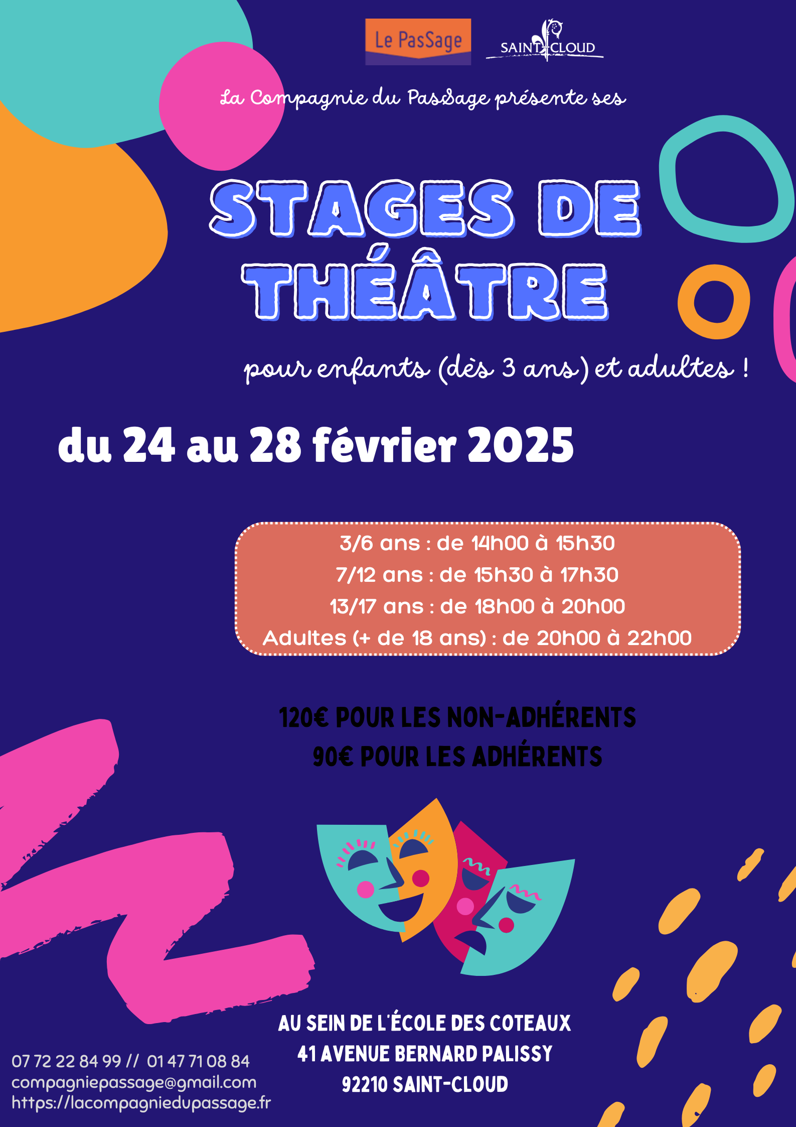 Les stages de théâtre d’HIVER auront lieu du lundi 24 au vendredi 28 février.