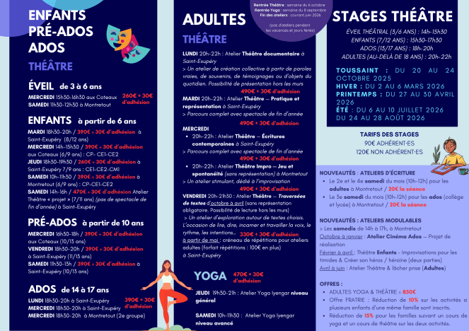 Les inscriptions sont officiellement ouvertes pour les ateliers de théâtre, de yoga… et les nouveautés de la saison :