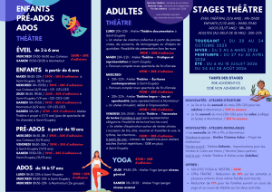LES INFORMATIONS SUPPLÉMENTAIRES SUR LES JOURS, HORAIRES, TARIFS et FICHES D’INSCRIPTION sont dans la rubrique Nos Ateliers > Théâtre > Planning > Éveils, Enfants et Pré-Ados / Ados / Adultes.